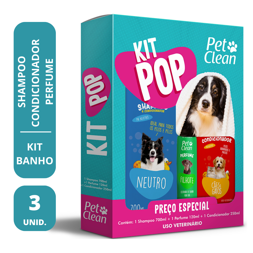 KIT Shampoo, Perfume e Condicionador Pet Clean Cães e Gatos