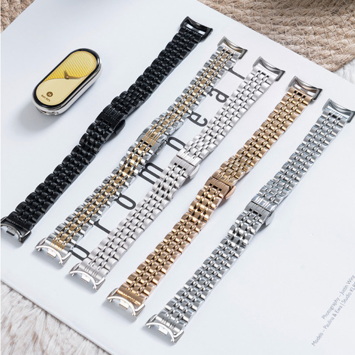 Adequado para Xiaomi Mi Band 8 Strap Pulseira de aço de cintura pequena Pulseira de Metal de substituição NFC Fashion Men Women Summer New Style Accessories