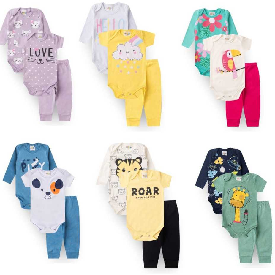 KIT 21 PEÇAS BODY MANGA CURTA ,LONGA BEBÊ MENINA E MENINO 100% ALGODÃO CALÇA LISA P AO GG