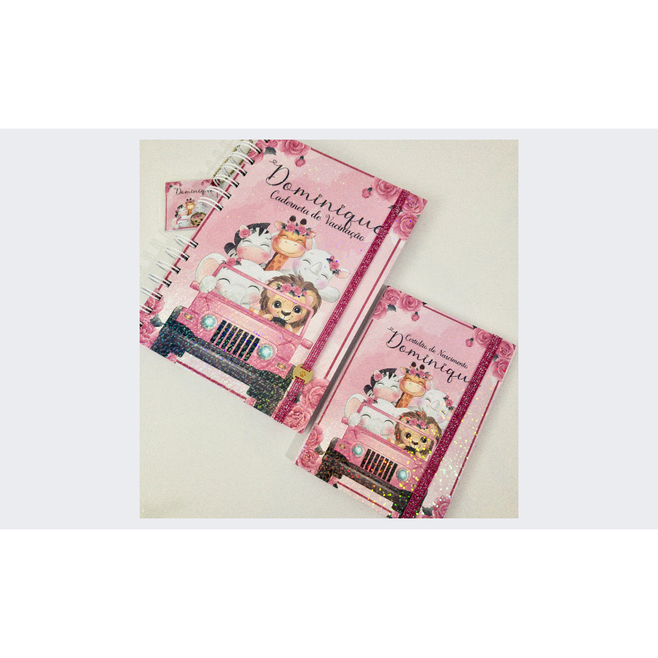 CADERNETA DE VACINA/SAÚDE SAFARI ROSA - MENINA - PERSONALIZADA - ATUALIZADA