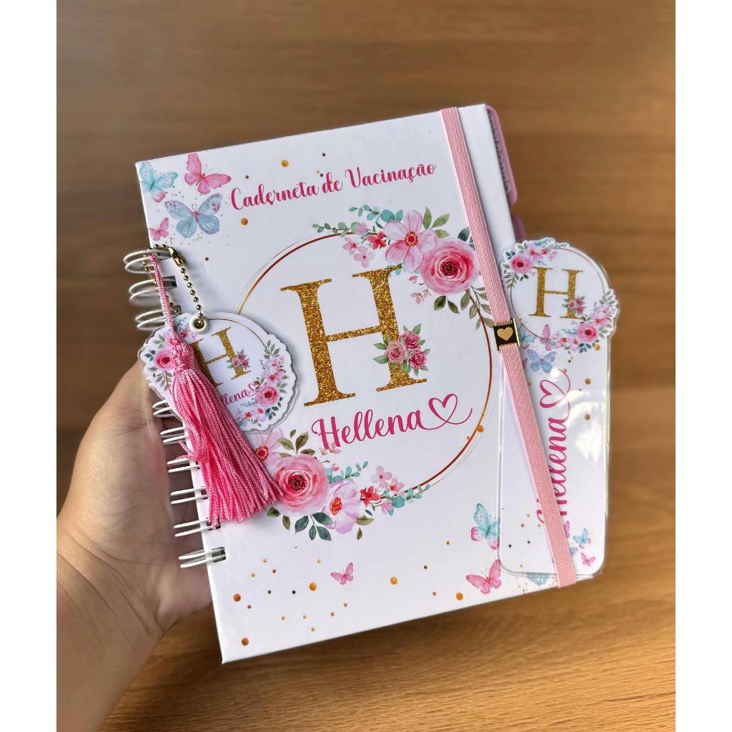 Caderneta de Vacina Saúde Bebê Personalizada Capa Dura Tema - Borboletas e Flores
