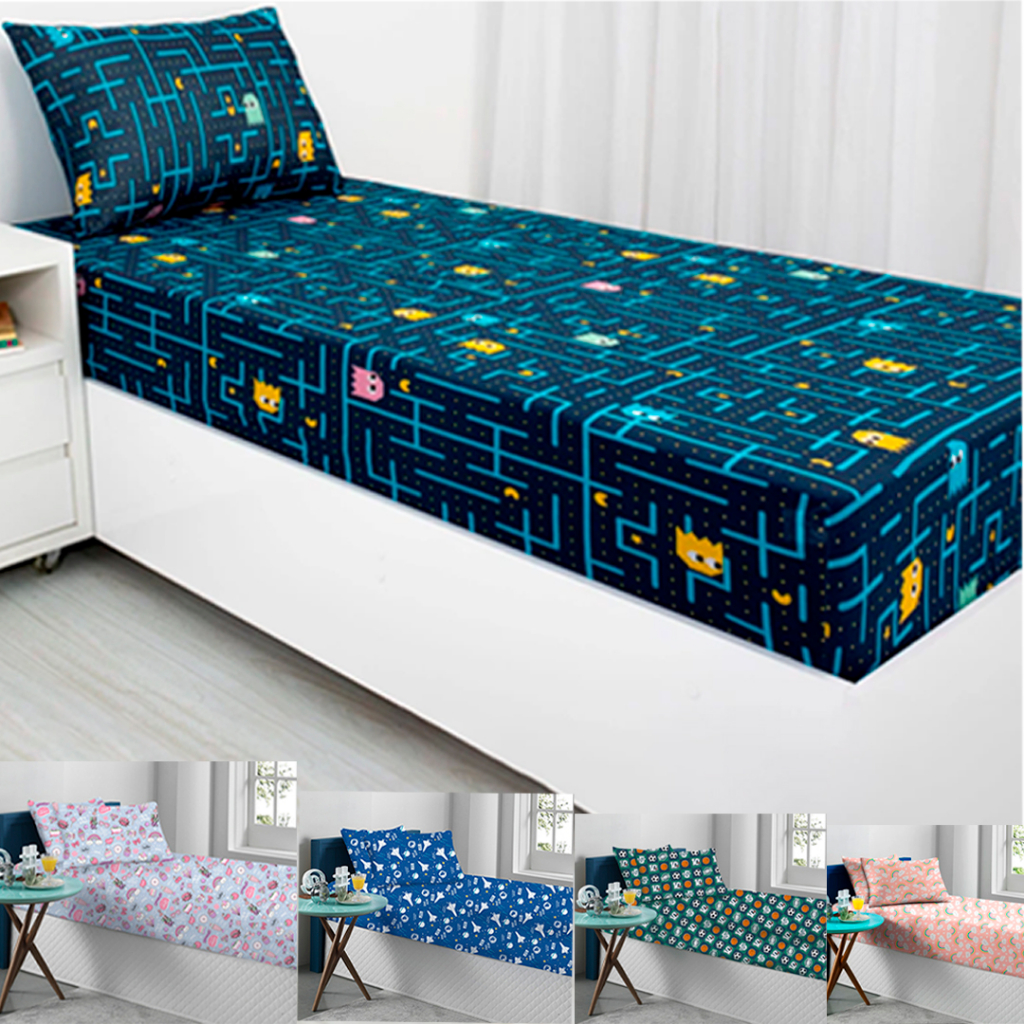 Jogo De Cama Solteiro Quarto Infantil Crianca Menino Menina 2 Pecas 1 Lencol Com Elastico 1 Fronha