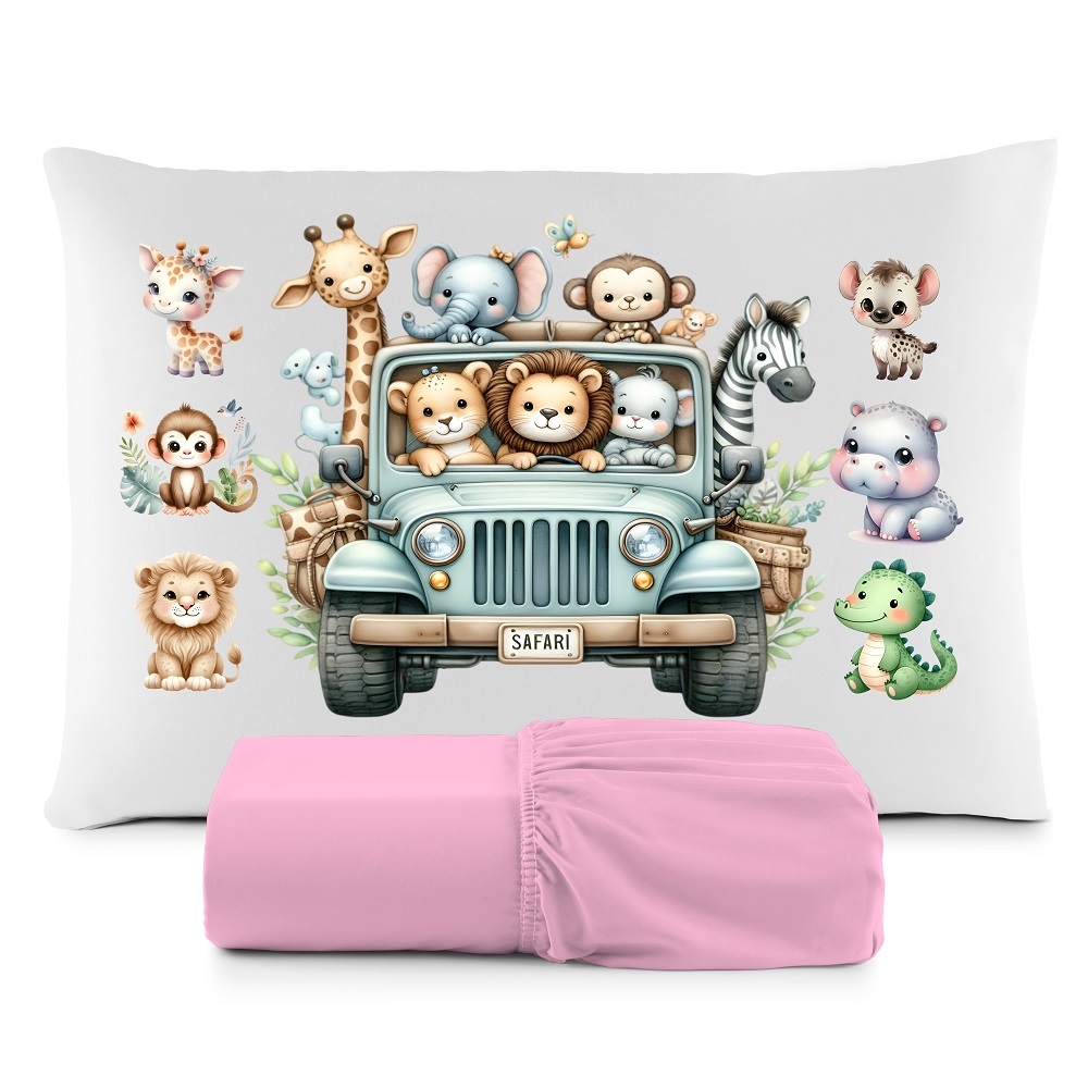 JOGO DE LENÇOL SOLTEIRO INFANTIL SAFARI QUARTO MENINO QUARTO MENINA FRONHA TRAVESSEIRO 2 PEÇAS
