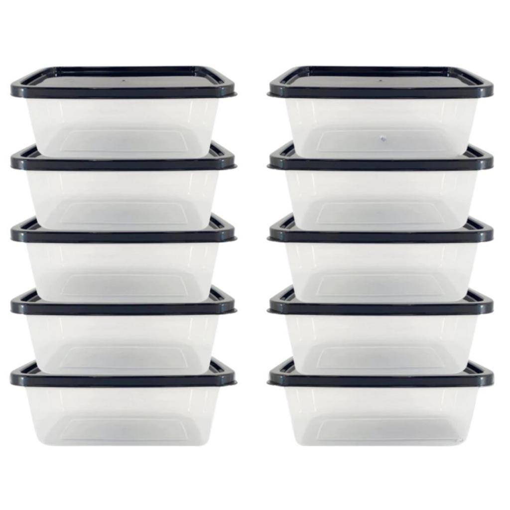 Kit 10 Potes 1 Litro Transparente Pote Marmita Fitness Lavável Organizador Micro-ondas Freezer BPA Free