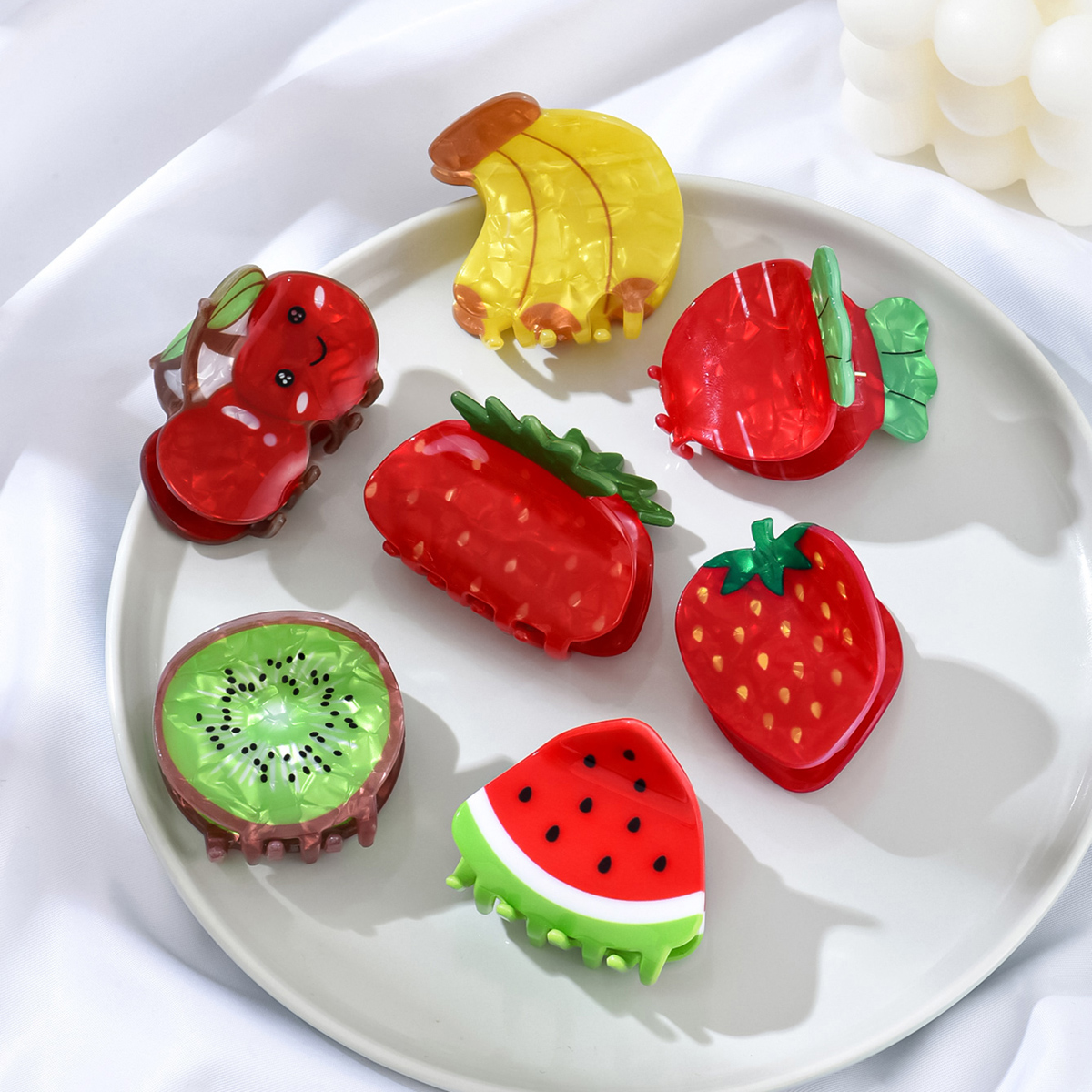 1 Pedaço de Acetato 3D Tridimensional de Acetato em Forma de Frutas em Forma de Desenho Animado Tridimensional Agarrar Clip Doce Giro Pequeno Clipe de Cabelo Adequado para Crianças Meninas Meninas