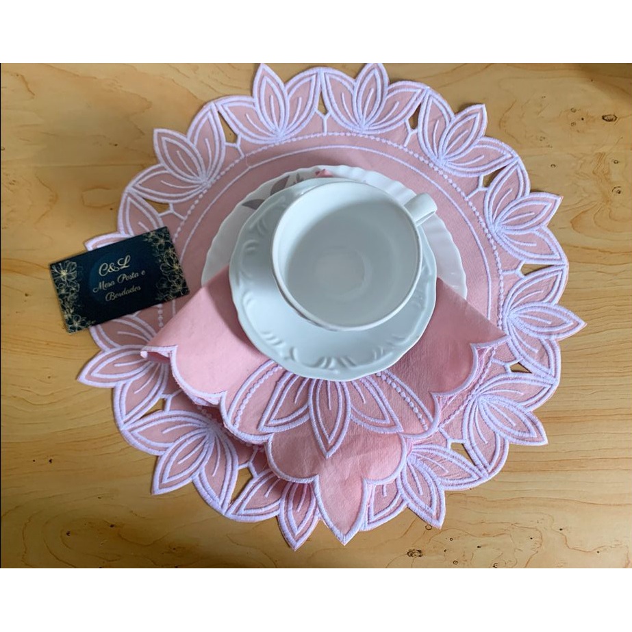 Kit jogo americano - Sousplat e Guardanapo - Conjunto 8, 12, 16, 20 e 24 Pçs - Mesa Posta - Decoração Rosa Seco no Rechilieu.