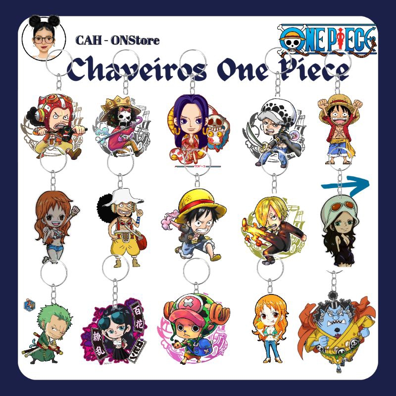 Chaveiro One Piece (Plastificado) Anime - Luffy Nami Zoro Sanji Robin Chopper Franky Brook