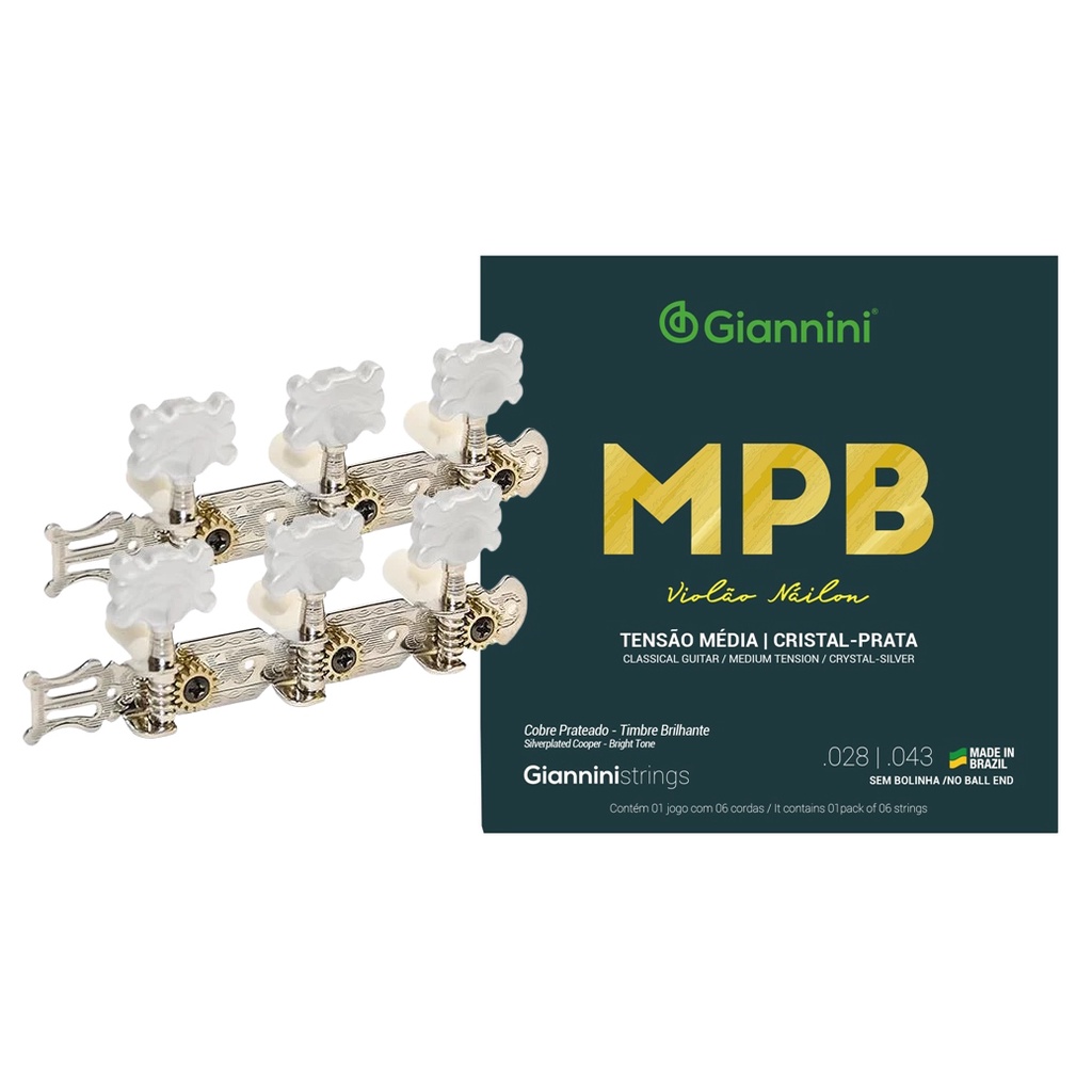 Tarraxa Pino Grosso Para Violão + Jogo De Cordas Nylon