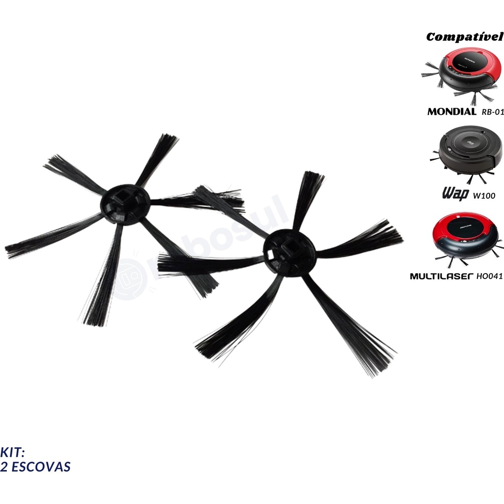 2 Escovas + 1 Filtro Para Robô Aspirador Wap W100 / Mondial RB01 / Multilaser HO041