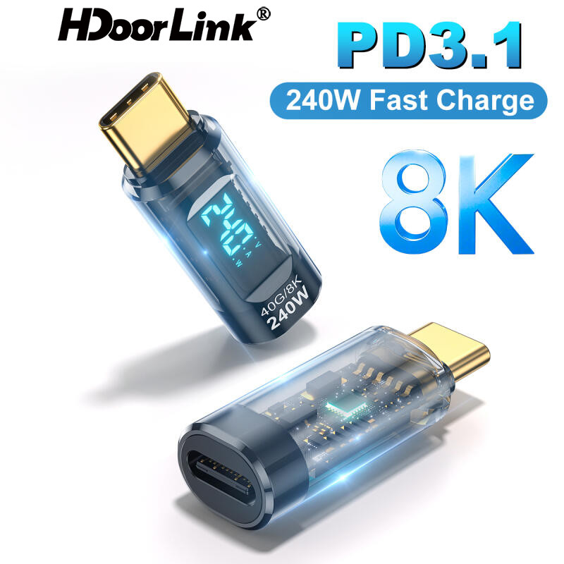 HdoorLink 240W USB C Extender Com Visor LED Medidor De Potência Digital 40Gbps 8K Adaptador USB4 Tipo Para Thunderbolt3 Laptop Mobile Phone