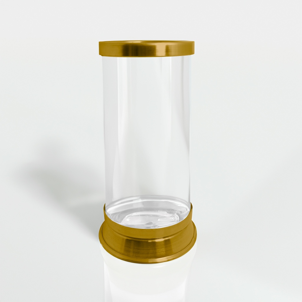 Porta Vela 7 Dias de Vidro aro base de Aluminio Dourado Copo Suporte Antichama