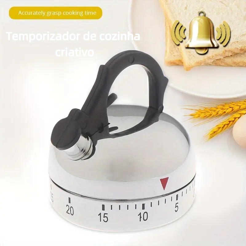 Timer Formato De Chaleira Prateado 60 Minutos Temporizador Cronometro Alarme Cozinha