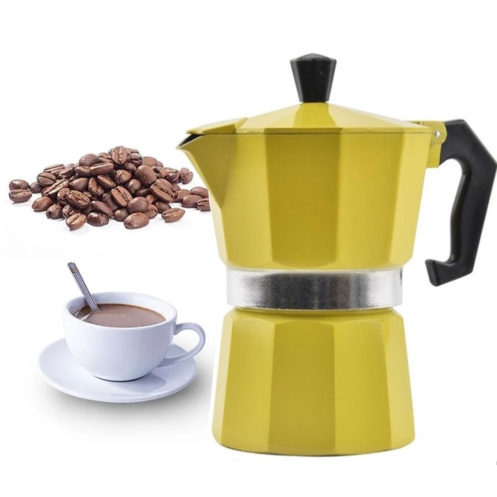 Cafeteira Italiana Moka Amarela De Alumínio 3 Xicaras De Café Puro e Fresco