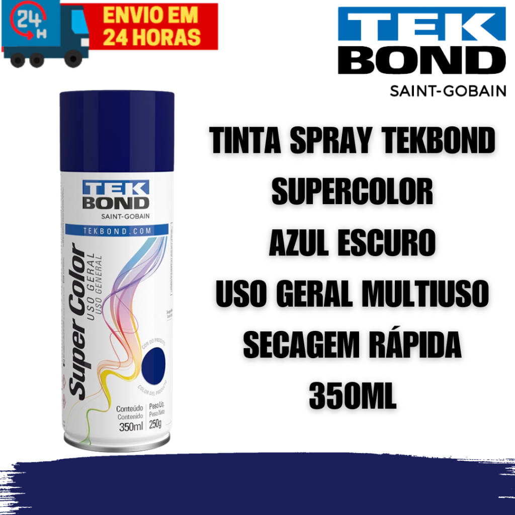Tinta Spray Azul Escuro Tekbond Supercolor Uso Geral Multiuso Secagem Rápida 350ml