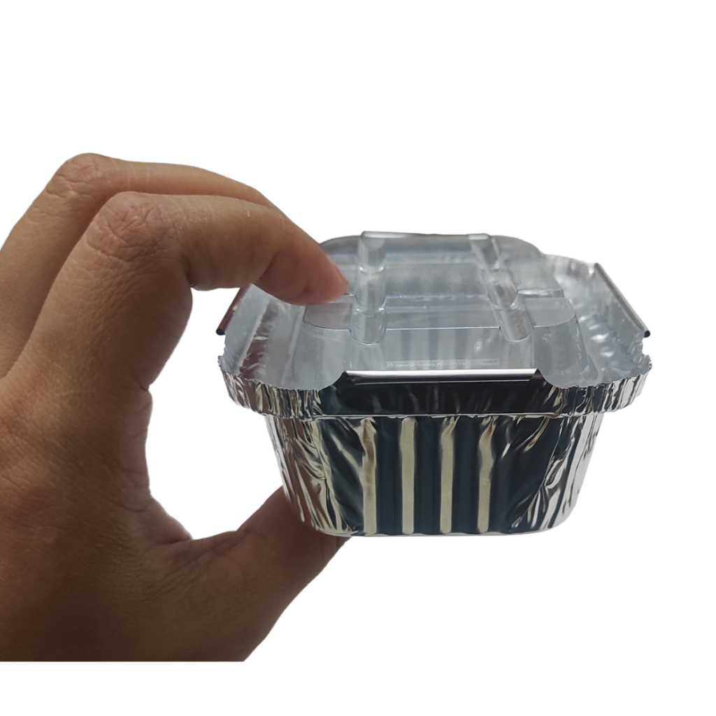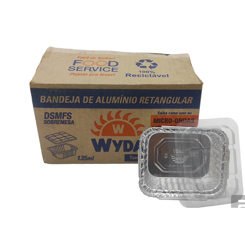 100 Unidades Marmitinha Bandeja Alumínio Retangular Descartável 135ml Tampa Pet Transparente Wyda