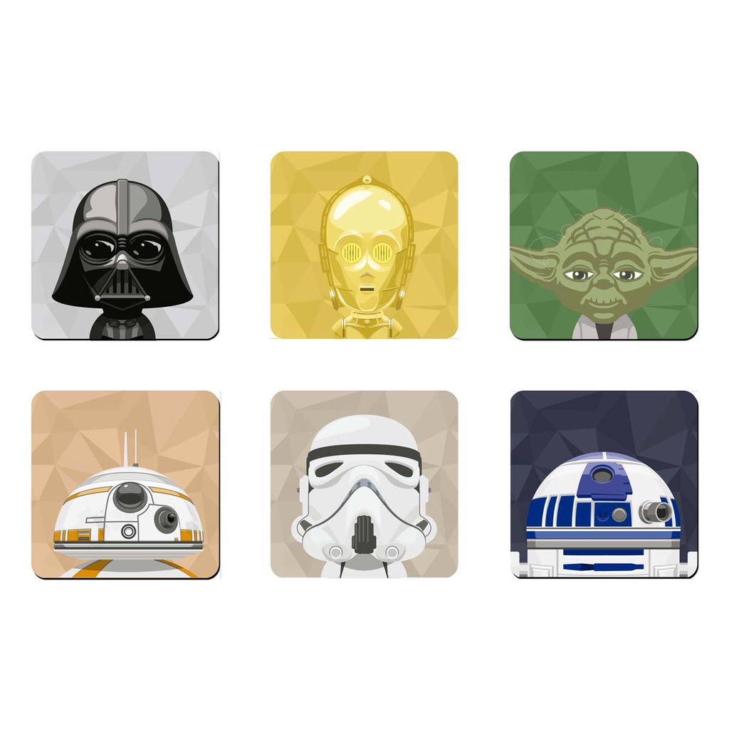 Kit 6 Porta Copos Bolacha Descanço MDF Decoração Mesa Posta Madeira Star Wars Robô Darth Vader Yoda Corte Laser