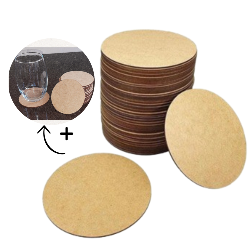 Kit 10 Sousplat Para Mesa Posta Jogo Americano 30cm - Mdf 3mm - bolacha + Kit 12 Porta Copos cru