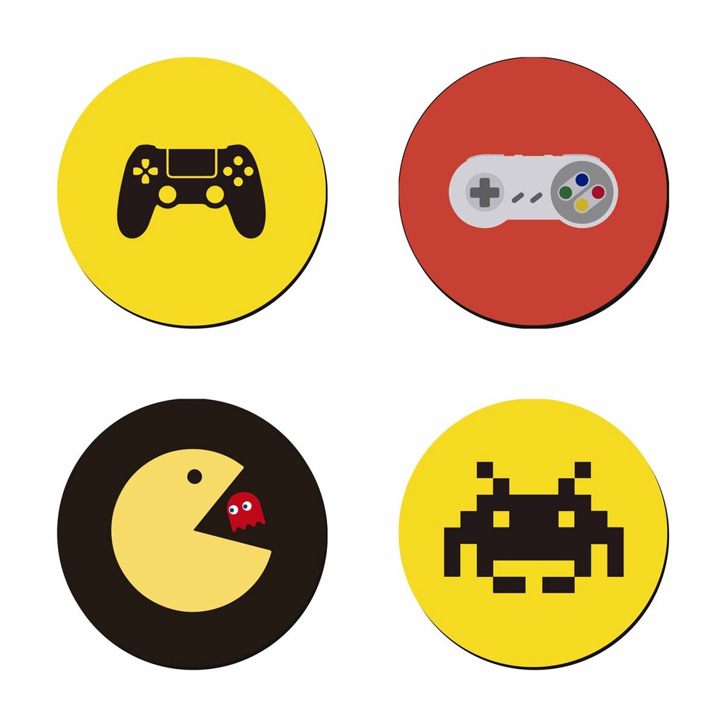 Kit 4 Porta Copos Bolacha Descanço MDF Decoração Mesa Posta Madeira Jogos Pac Man Video Game Game Over Corte Laser