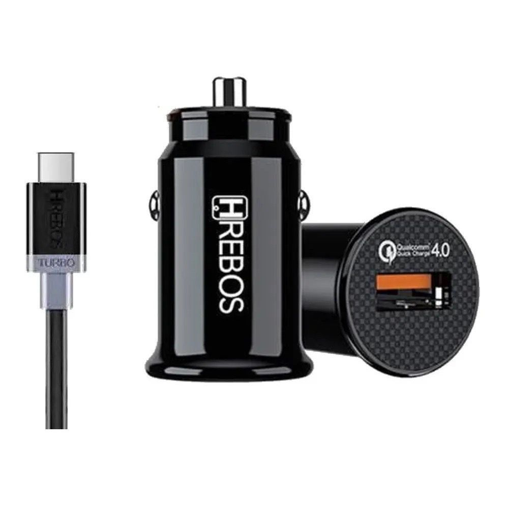 Carregador Veicular Turbo QC4.0 com cabo de Tipo-C HRebos original HS-308c