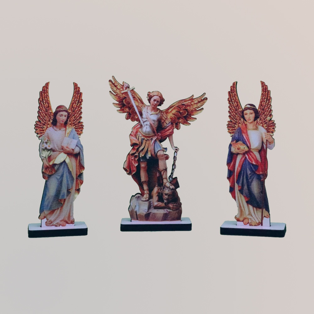 Trio Arcanjo Miguel, Gabriel e Rafael - Anjo - Santo - Religioso - Estatueta
