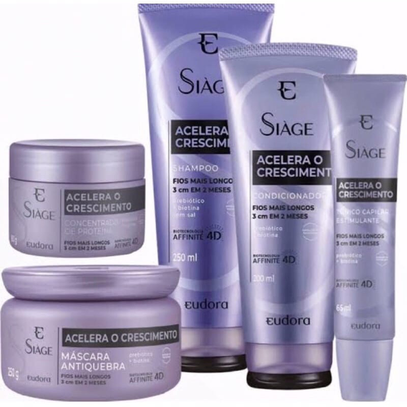 Linha Siàge Acelera o Crescimento- shampoo, condicionador, hidratação, tônico - Eudora.