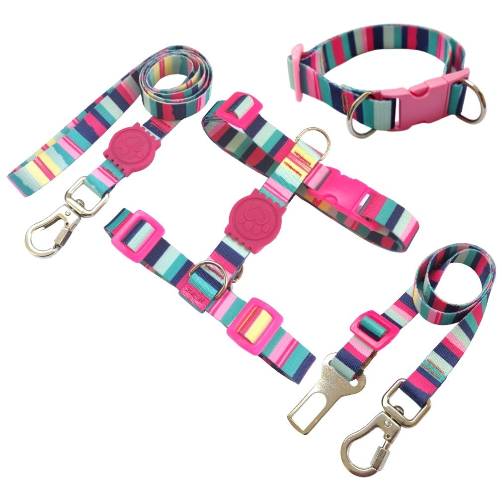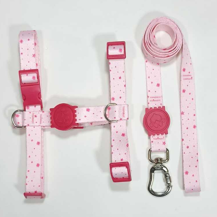 Kit Pet Coleira Peitoral H Antipuxão Para Cachorro e Gato Guia Cinto de Segurança Adestramento Rosa