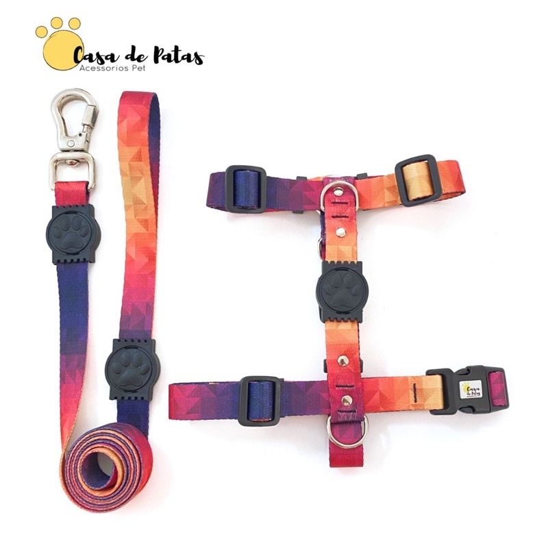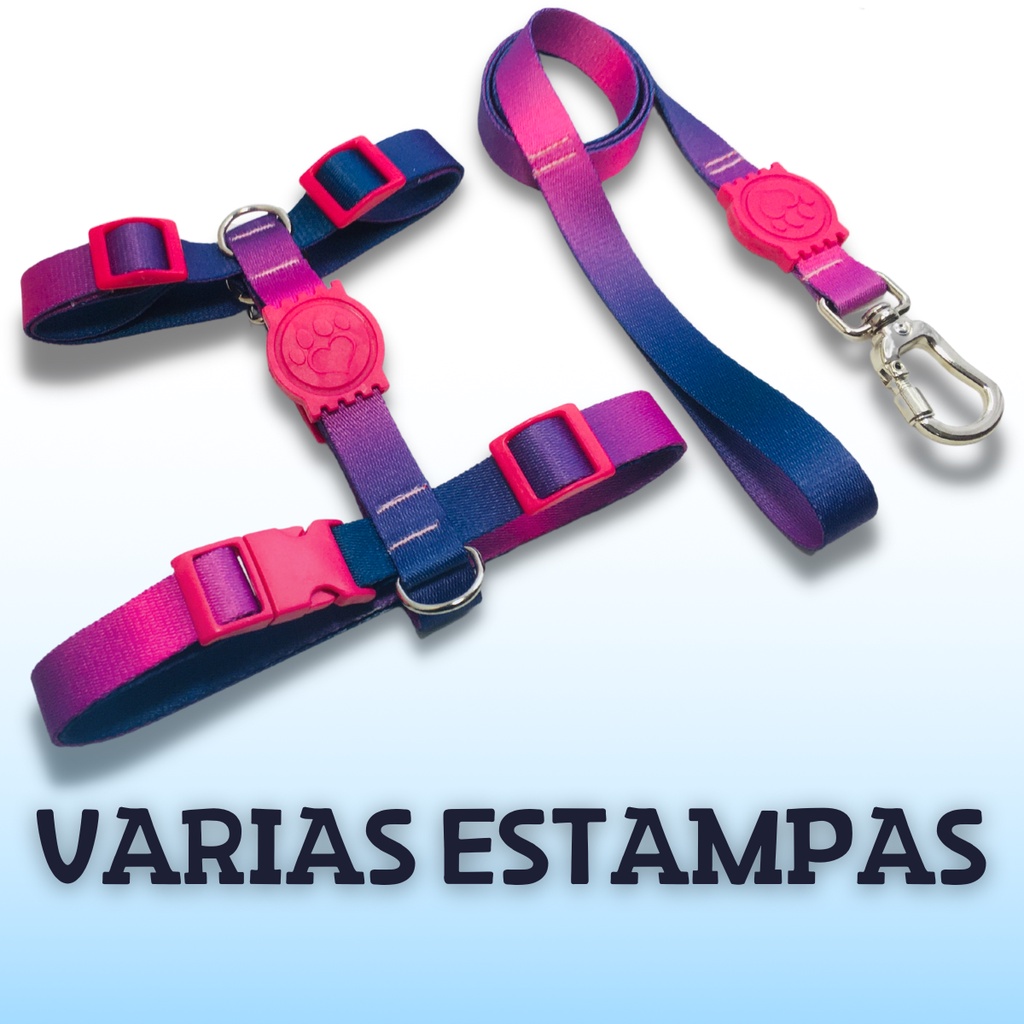 Coleira Peitoral H Anti Puxão e Guia 1,10m para Cachorro Varias Estampas