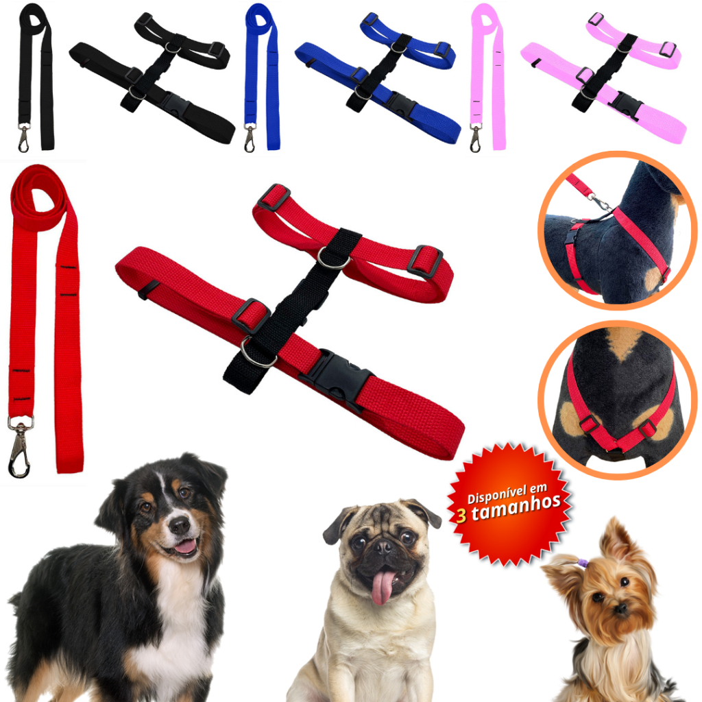 Kit Coleira para Cachorro Tamanho M: Peitoral + Guia modelo H