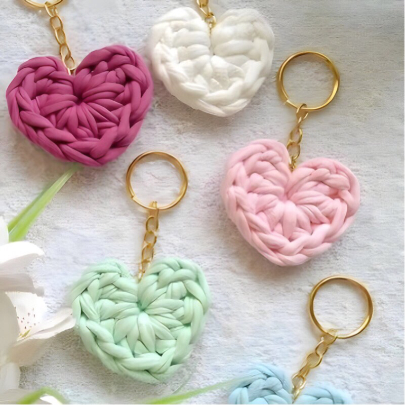 "Chaveiro de Coração em Fio de Malha - Lembrancinha Criativa para Festas e Eventos"