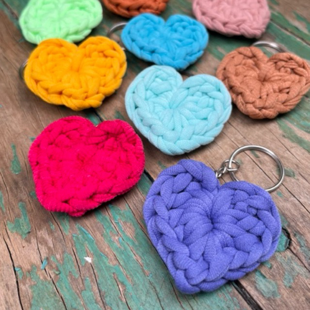Pronta Entrega | Chaveiro de Coração Crochê em Fio de Malha Premium 10 unidades | Envio Imediato