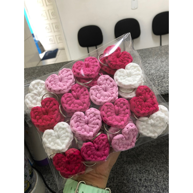 10 chaveiro crochê PREMIUM coração fio de malha lembrancinha