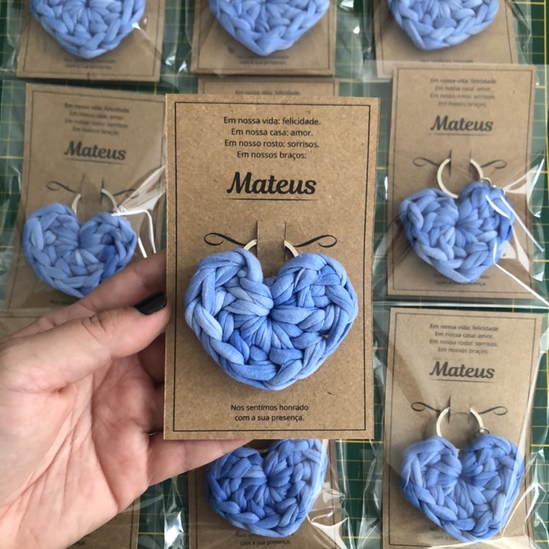 kit Coração em fio de malha chaveiro lembrancinha com nome personalizado