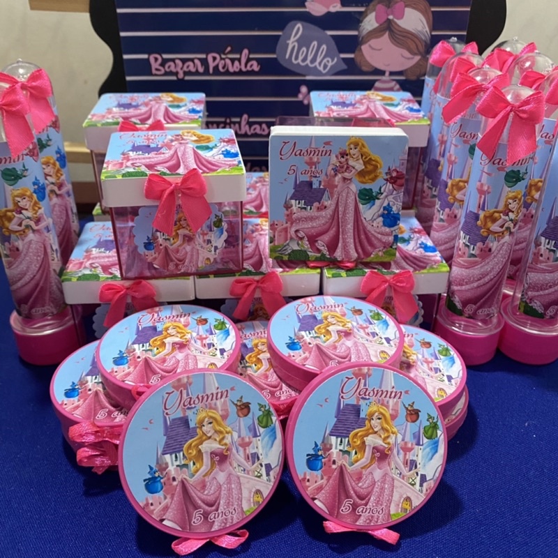 kit personalizado princesa Bela dormecida 10 cxs acrílicas 5x5, 10 Tubetes e 10 latinhas ( fazemos qualquer tema )