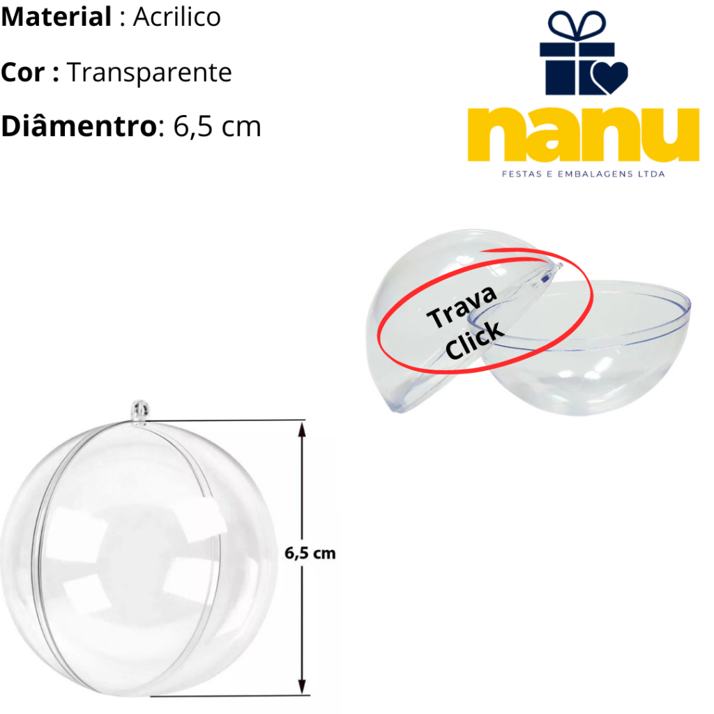 Kit 10 Esferas Acrílicas 6.5 cm - Bolinha Acrílica de natal - Enfeite e Porta Foto - Lembrancinhas