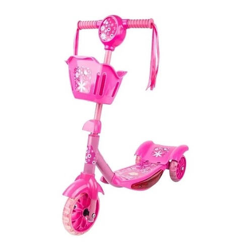 Patinete com Cesta Infantil 3 Rodas Menina Radical Belinda com Luz e Som DM Toys DMR5027