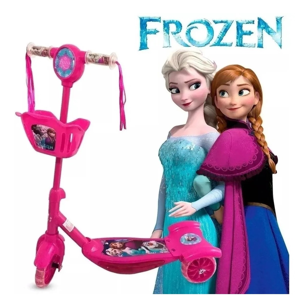 Patinete 3 Rodas Infantil Frozen Musica Meninas C/ Cesta Luz