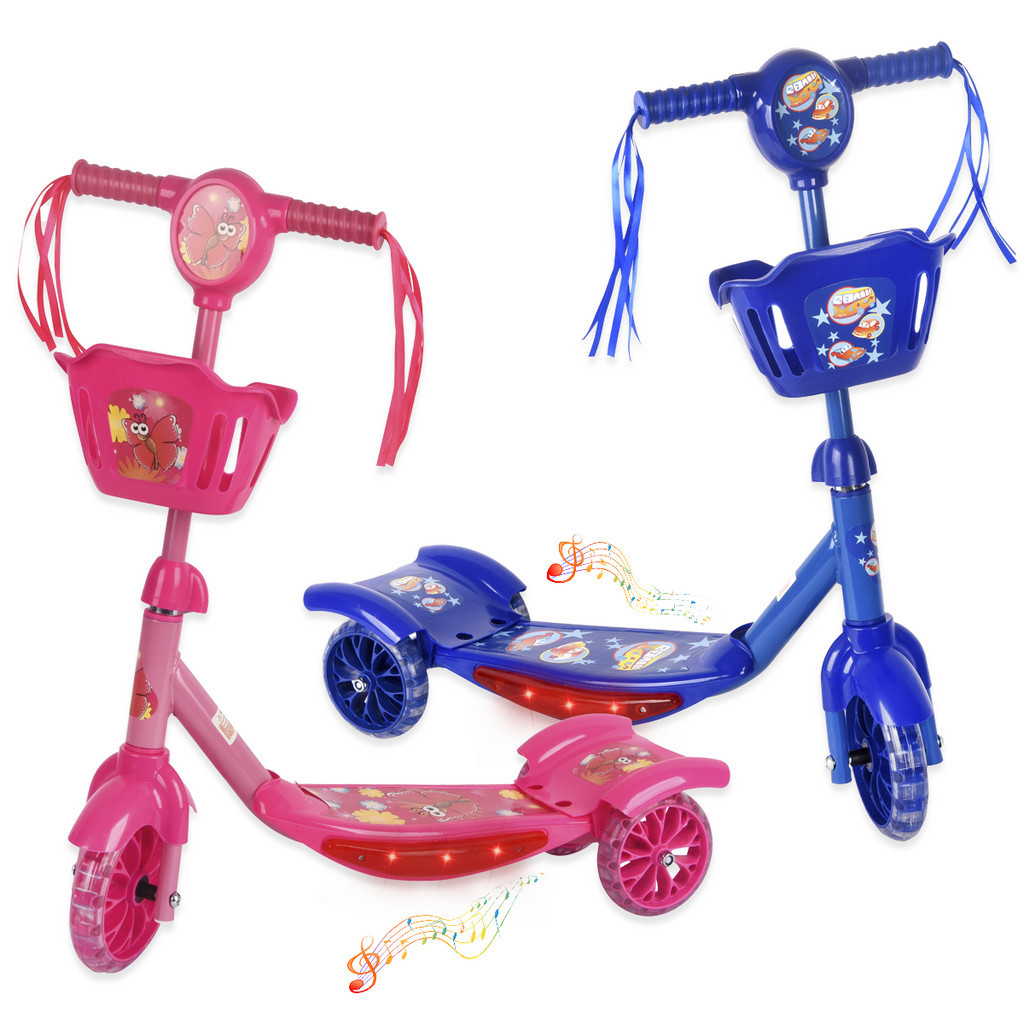 Patinete Infantil 3 Rodas Varia Modelos Musica C/Cesta Luz Musica Promoção