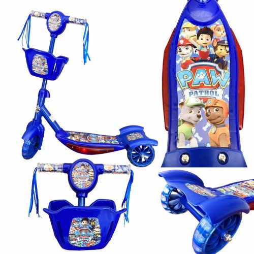 Patinete Infantil Patrulha Canina Menino Azul com 3 Rodas, Cesta, Luz, Musica e Freio Diversão da Criança