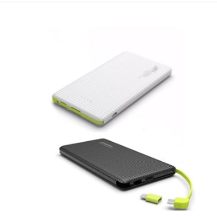 Carregador Portátil Power Bank Slim Pineng, 5.000Mah, Cabo E Adaptador Embutido, Preto