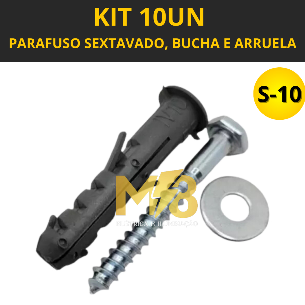 Kit Parafuso Sextavado com Bucha de Nylon 3/16x45 com bucha 8 - 1/4x50 com bucha 10 e - 5/16x65 com bucha 12