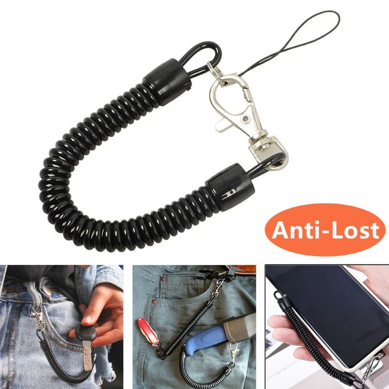 Chaveiro Retráctil Universal Anti-Perda Corda De Tensão/Cartão Preto Mola Cordão De Telefone Celular Com Fivela De Metal/Estudante Capa De Idoso Linha/Multiuso