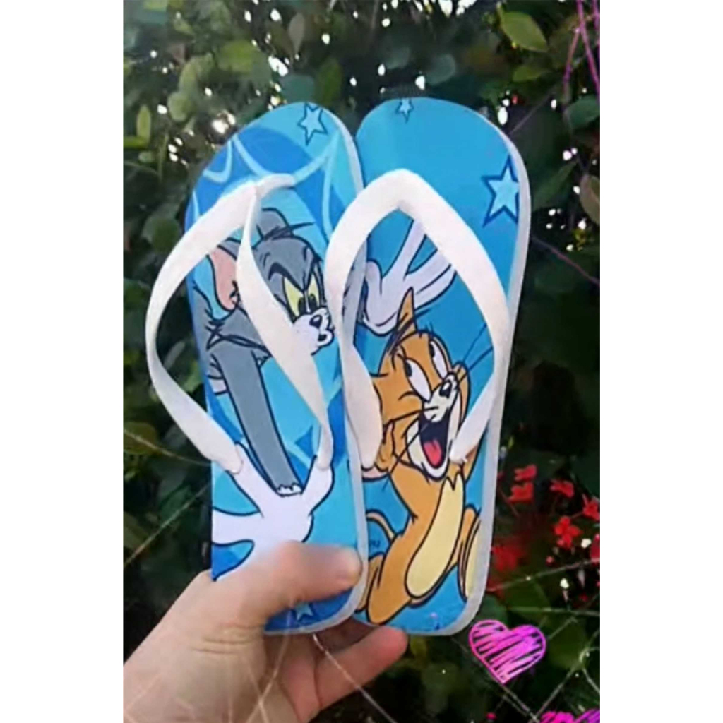 Tom e Jerry Chinelo do Gato e o Rato correndo. Presente do tema e lembrancinha de festa temática desenho Adulto e Infantil menina menino