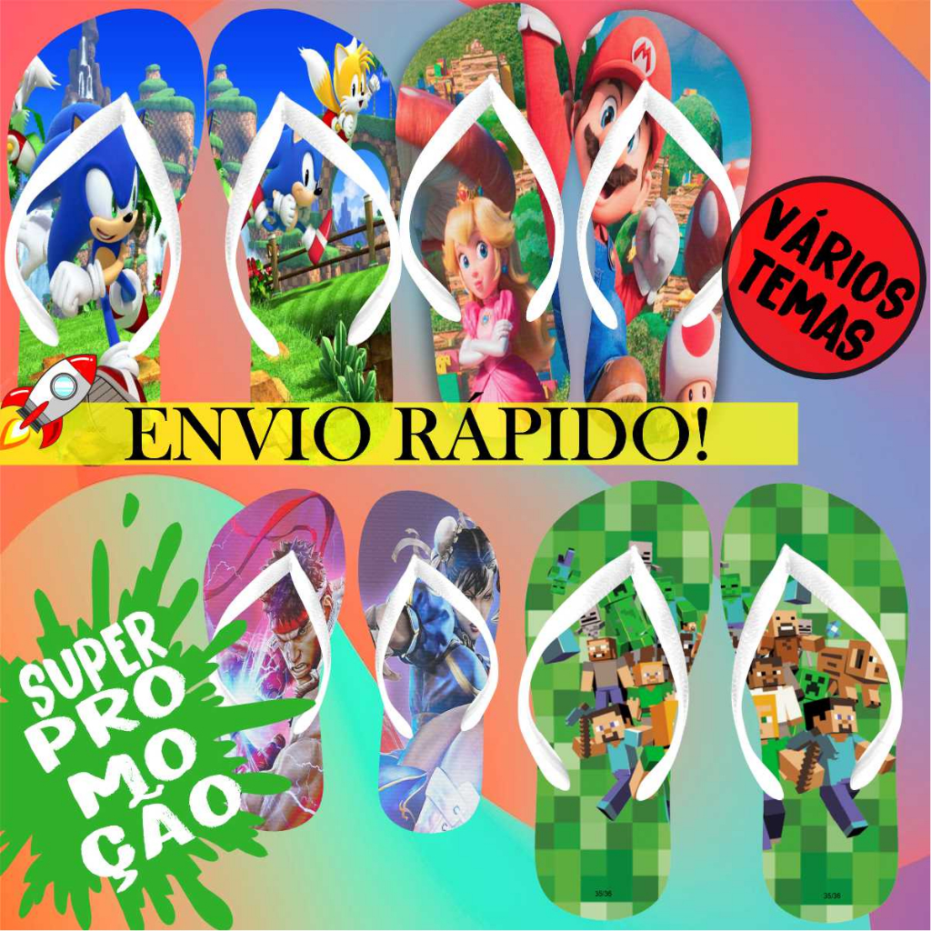 1 Chinelo Infantil Menino. Chinelo de bebê e criança. Da Patrulha canina, Ben 10, Carros, Super Mario, Minicraft, Hulk, Tartaruga Ninja, Stitch, Super Onze, Toy Story, Gato de Botas, Naruto, Garfield, Pokemon