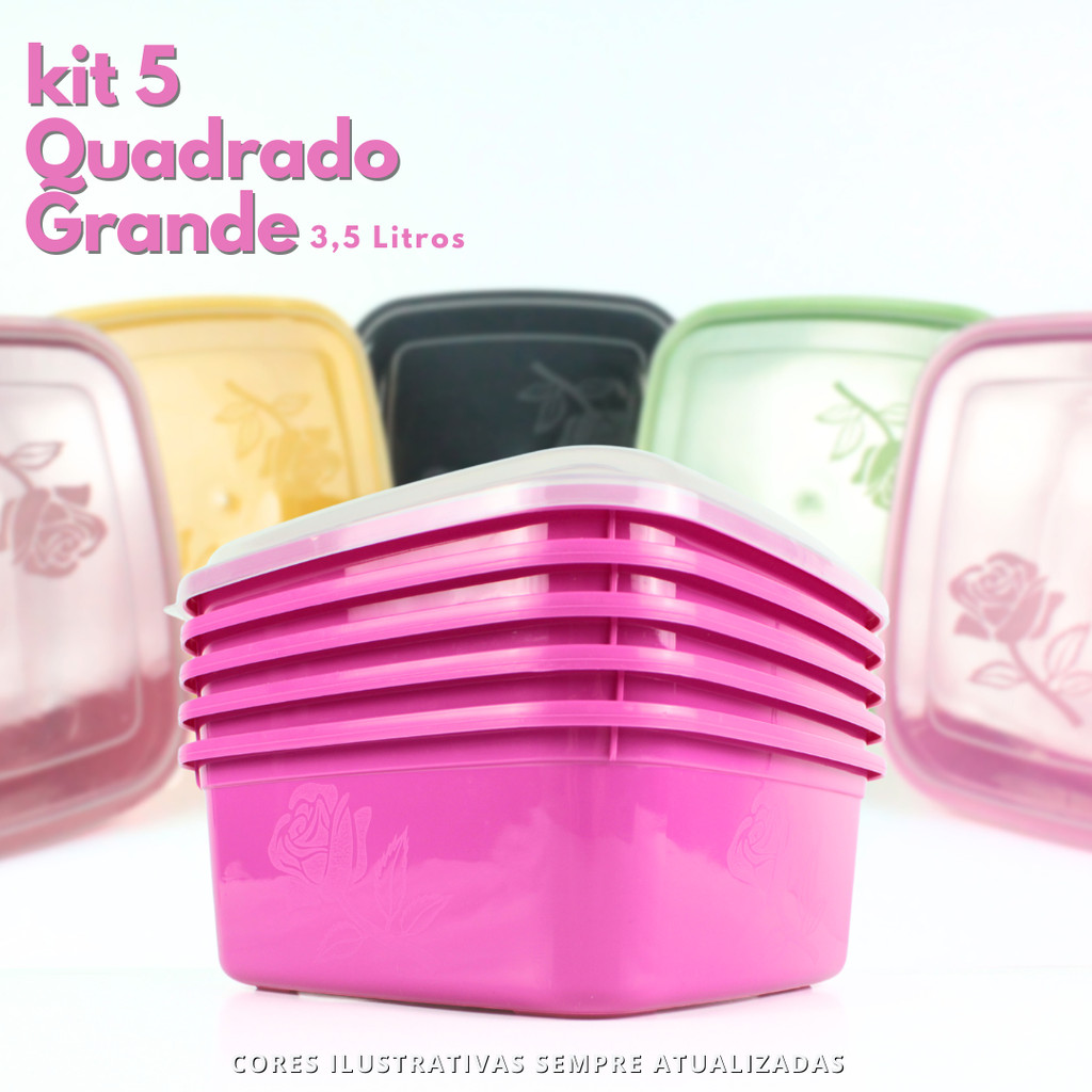 Kit 5 Potes Quadrado Grande de plástico Colorido com 3,5 Litro, para organizar e armazenar a sua cozinha.