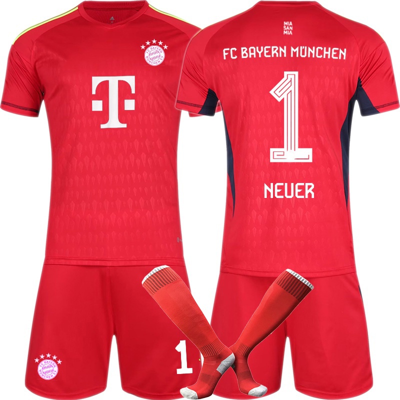 Uniforme goleiro futebol n ° 1 Neuer camisa Club goleiro terno Vermelho de manga curta jogo terno sportswear