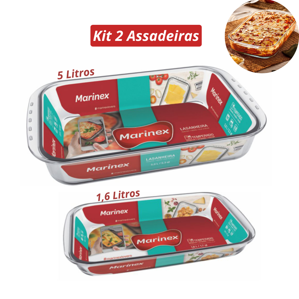 Kit 2 Travessas Assadeiras Marinex 5 Litros 1,6 Litros De Vidro Lasanheira Sobremesa