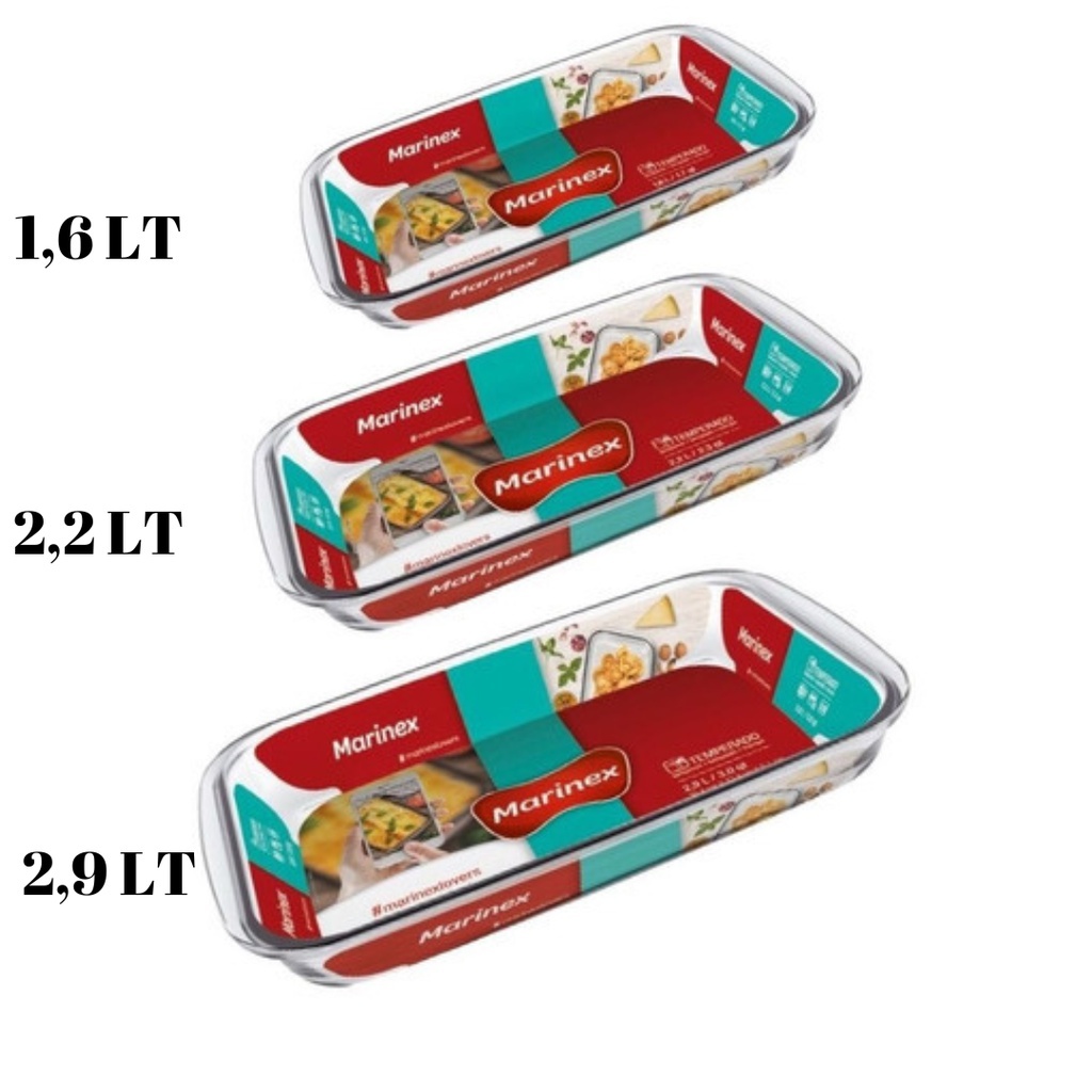 Jogo Kit Assadeiras Travessa Retangular Vidro Temperado Transparente Marinex Lasanheira Forma Conjunto Pequena Média Grande P M G 1,6L 2.2L 2.9L Forno