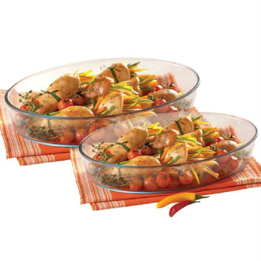 Kit 2 Lasanheira De Vidro Oval 1,6 Litros Marinex Assados