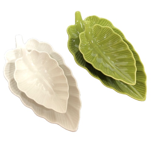 Conjunto de Petisqueira Porcelana Folha 2 Peças Enfeite Decorativo