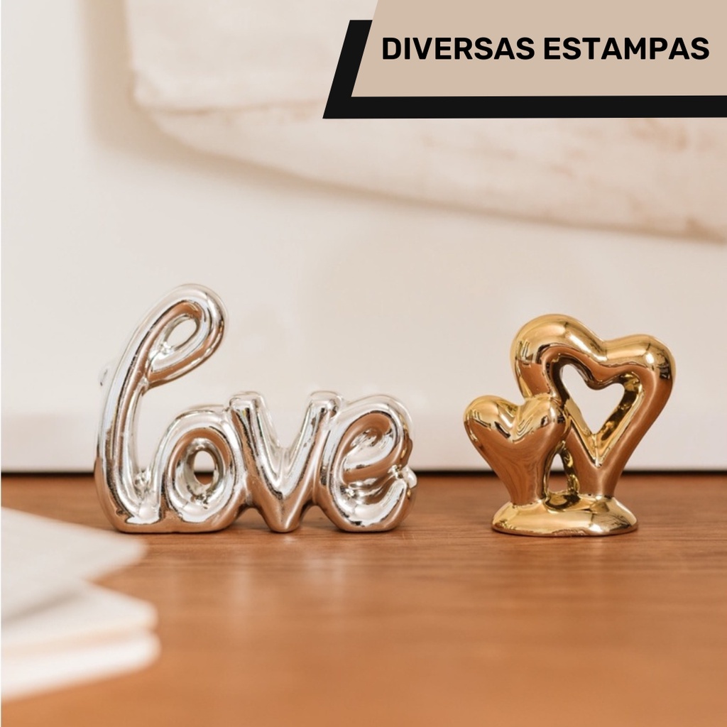 Enfeite Objeto Decorativo Coração ou LOVE metalizado de porcelana - Unidade